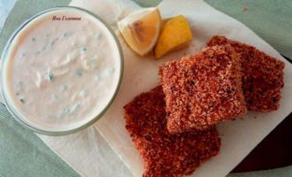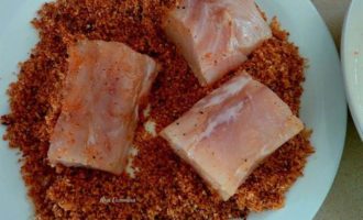 • Обмакнуть рыбу в яйцо.