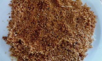 • В другой миске перемешать сухари, приправу и оливковое масло.