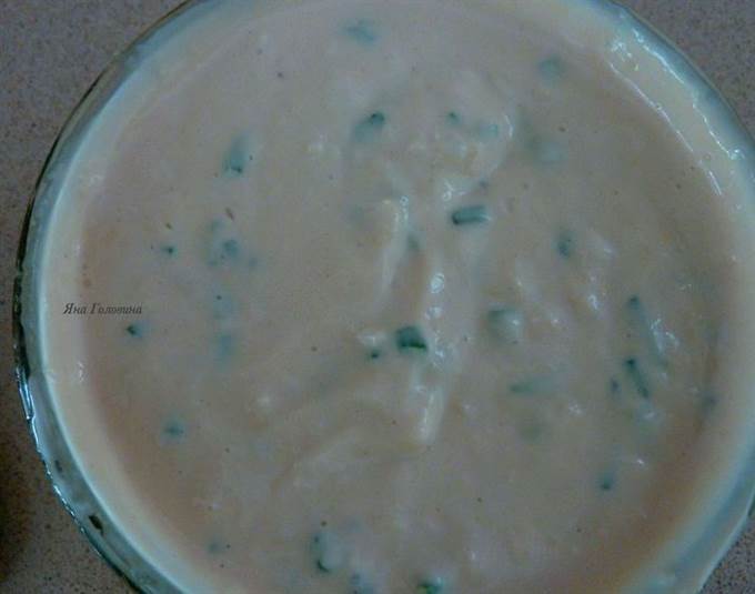 • Пока рыба запекается делаем соус (соус для детей островат, для деток даю просто майонез если просят). В маленькой миске смешать майонез, мелко порезанный лук шнит, горчицу, лимонный сок и хрен.Приправить солью и перцем.