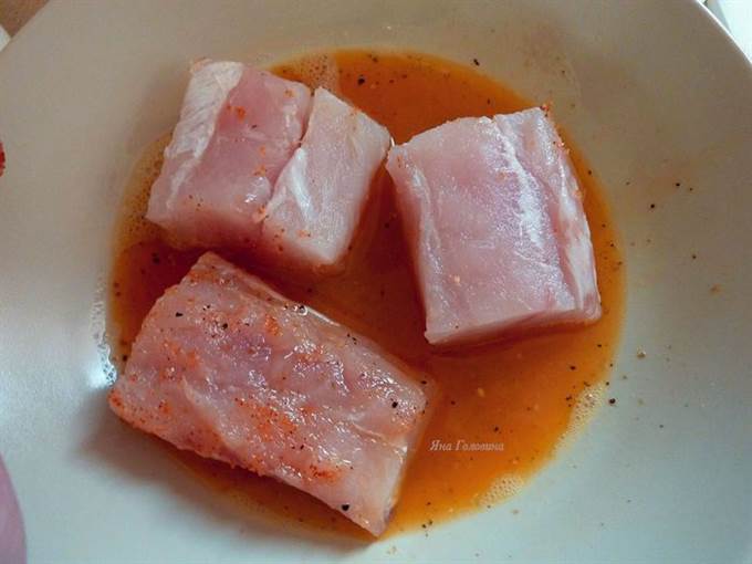 • Рыбу порезать на кусочки.