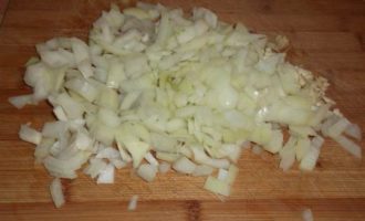 Мелко порезать лук и чеснок, обжарить до прозрачности в оливковом масле, половину добавить в фарш (у меня свинина с говядиной, но можно просто свиной или говяжий).