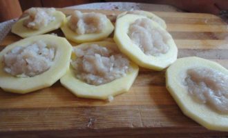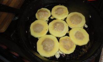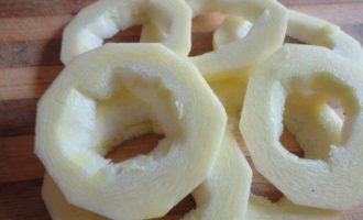 • Обмакивать колечки с фаршем в кляр, жарить на растительном масле.