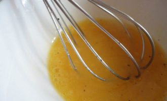 • яйца взбить венчиком, добавить соль, молотый перец.
