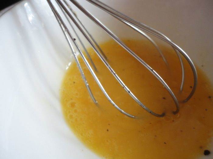 • яйца взбить венчиком, добавить соль, молотый перец.