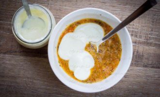Всыпаем муку, помешивая. Тесто должно получится как густая сметана.