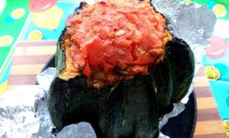• Для сохранения сочности я нарезала помидоры и прямо с соком прилепила кусочками наверх, так и запекала чуть больше часа при 200°С. Когда зубочистка хорошо проходит в самой толстой стенке «бомбочки», тогда он готов!