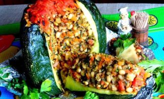 • Отрезаем осторожно дольку кабачка с начинкой… Это будет одна порция!