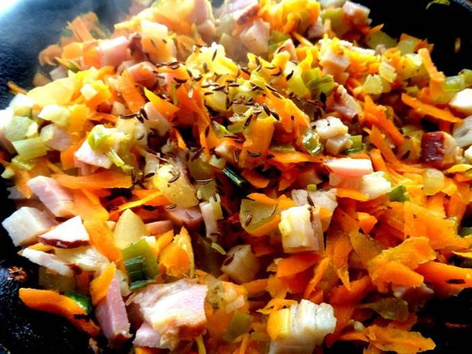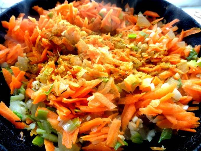 • Ещё я добавила немного кабачковой серединки-мякоти, обжарив её!