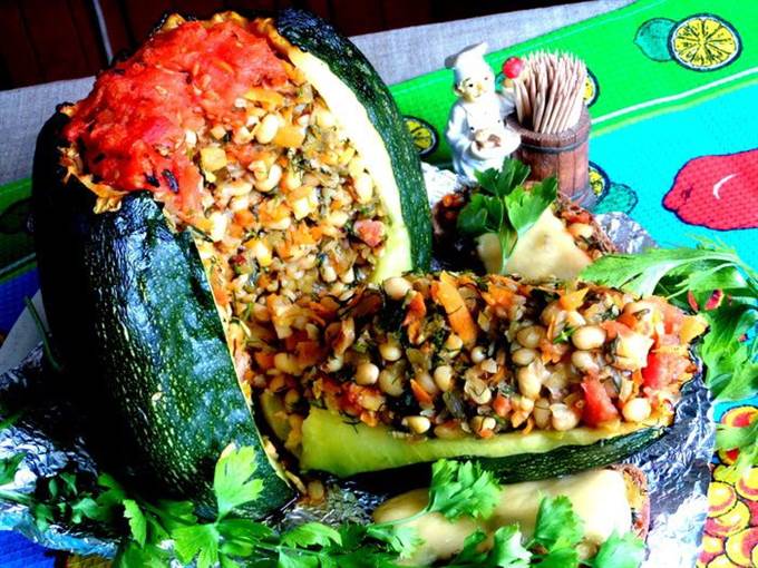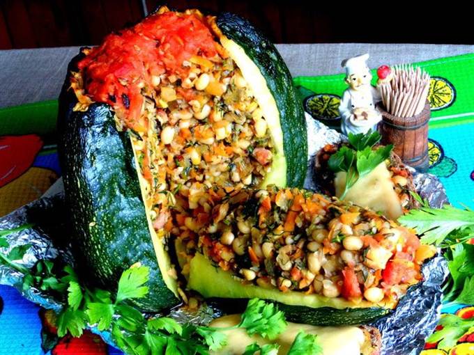 • Отрезаем осторожно дольку кабачка с начинкой… Это будет одна порция!