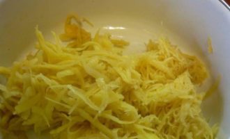 • Теперь об остальной картошке. Одну натираем на крупной терке, другую — на мелкой, чтоб фактура поверхности была поинтересней.