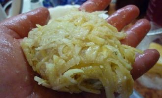 • Все залепляем. И вовсе нет беды, если начинка где-то проглядывает. Это даже интересно. По сути, картошка в картофельной панировке.