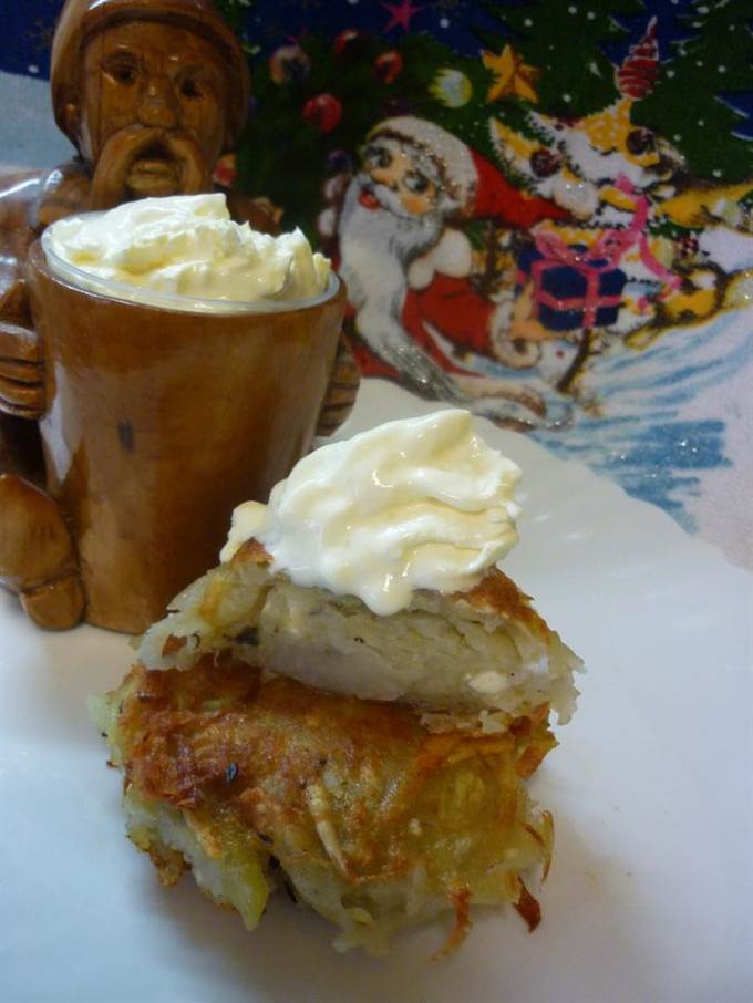 • Ну а теперь все очень традиционно: мочим ладошки, на одну тонким слоем раскладываем сырые картофельные лепесточки…