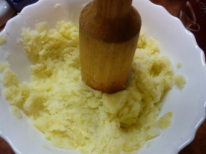 • Одну такую толстушку сварить. Я варила в свч. Не солить. Помять хорошенько толкушкой.