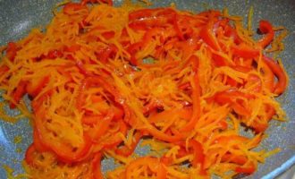 • Перец и морковь также обжариваем на растительном масле.