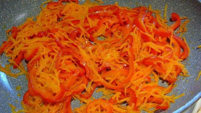 • Перец и морковь также обжариваем на растительном масле.