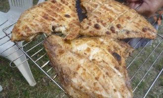 Жарим на костре 3-5 минут с одной и другой стороны до румяного цвета.