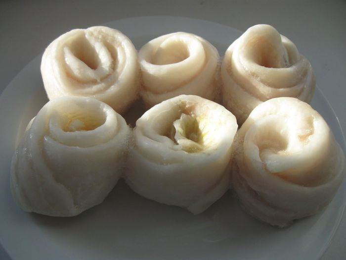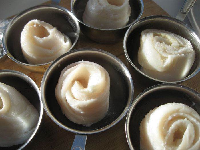 Филе камбалы свернуть в рулеты (лучше это сделать заранее и подморозить филе) или приобрести филе, уже скрученное рулетами.