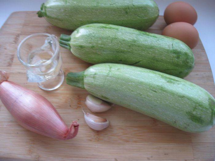 Приготовить необходимые ингредиенты. Лук, чеснок, кабачки очистить.