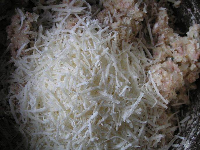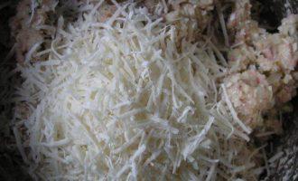 Попробовать смесь, посолить, поперчить по вкусу и добавить тертый пармезан. Тщательно перемешать.