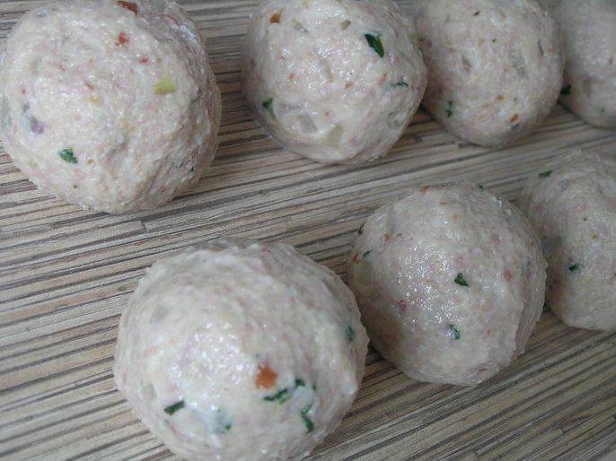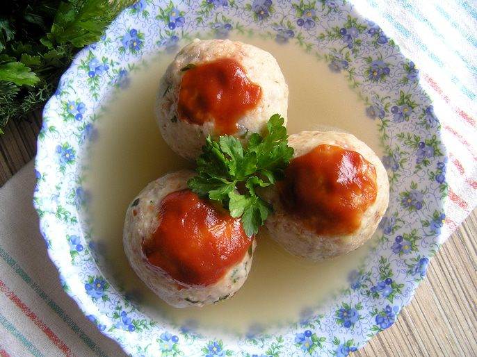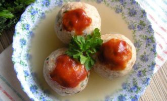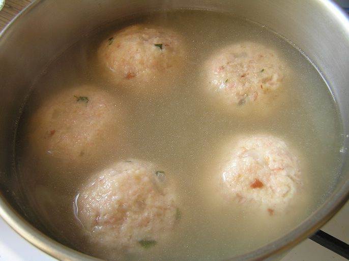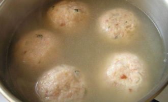 Бульон довести до кипения, положить приготовленные шары (2 шт. на человека) и готовить на медленном огне 10-15 минут.