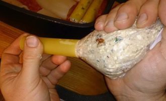 Фаршируем каннеллони при помощи кондитерского пакета.
