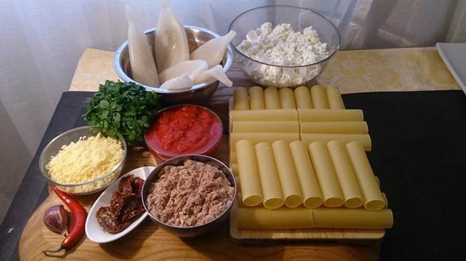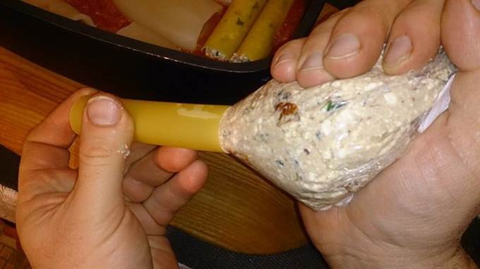 Фаршируем каннеллони при помощи кондитерского пакета.