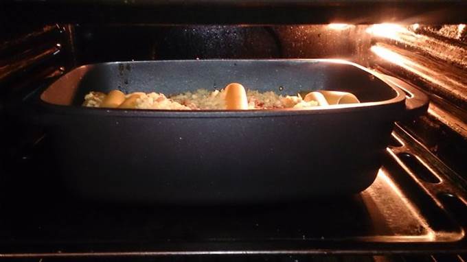 Посыпаем сыром и ставим в духовку, разогретую до 180°С на 30 минут.