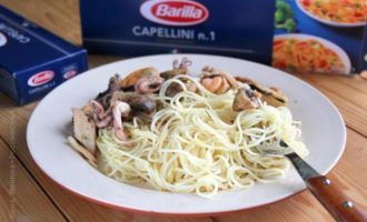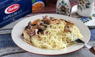 Капеллини с морским коктейлем и шампиньонами готовы. Приятного аппетита!
