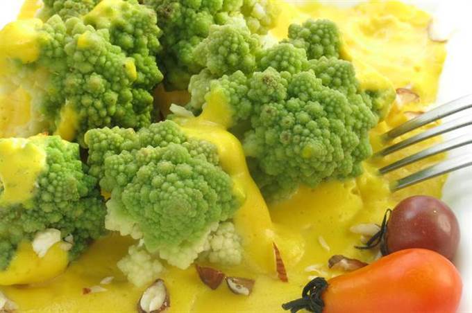 • Первым делом найдем (вырастим, купим) капусту романеско. Это капуста напоминает пирамиды или кораллы, или какие-то инопланетные объекты.