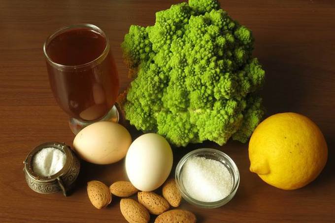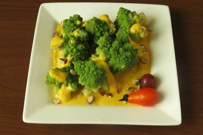 • Капусту выкладываем на блюдо, солим, поливаем соусом и посыпаем миндалем.