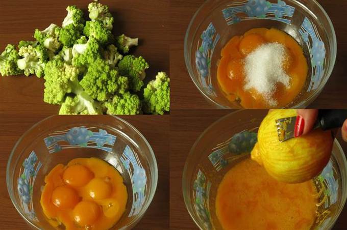 Для соуса выделим 6 желтков, смешаем с сахаром, добавим цедру половины лимона.