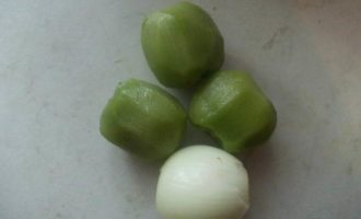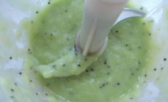 • Взбить в блендере лук и киви до однородного состояния. У меня был киви кисловатый, поэтому я добавила ложечку меда. Здесь уже дело вкуса каждого. Подавать с соусом или полив выделившимся соком от запекания.