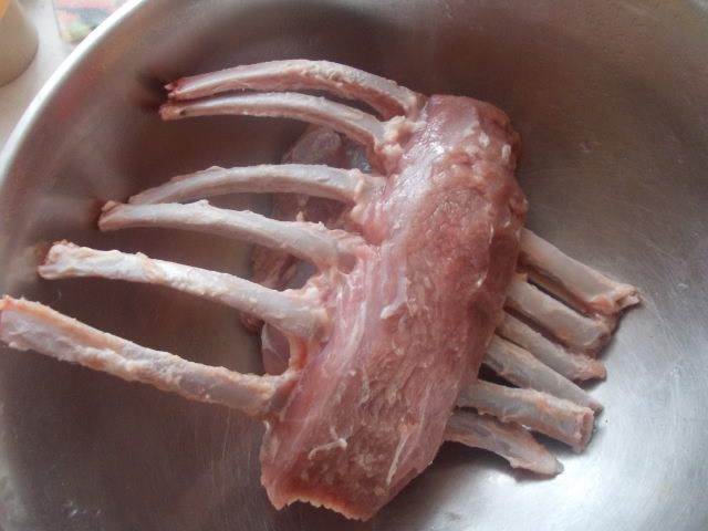 • Мясо хорошо помыть, зачистить ребрышки и насухо вытереть.