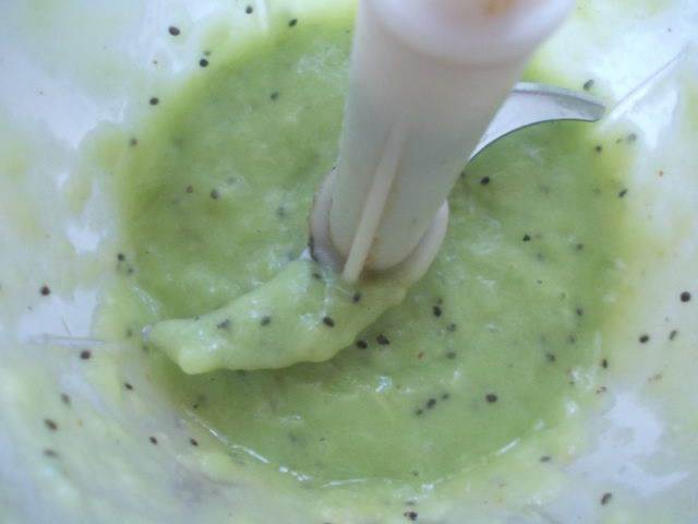 • Взбить в блендере лук и киви до однородного состояния. У меня был киви кисловатый, поэтому я добавила ложечку меда. Здесь уже дело вкуса каждого. Подавать с соусом или полив выделившимся соком от запекания.