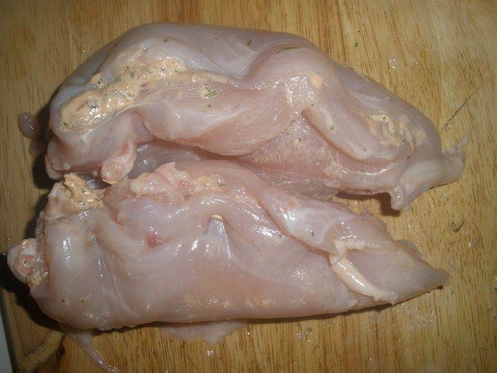 Филе помыть, сделать надрезы чтобы получилисб кармашки для фарширования.
