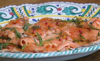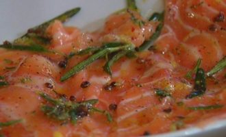 Карпаччо из семги с розовым перцем