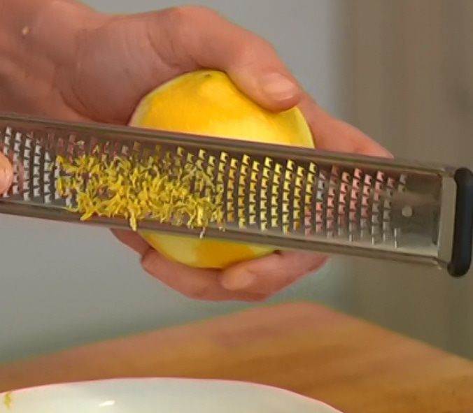 • Цедру лимона натереть на мелкой терке, из половинки лимона выжать сок.