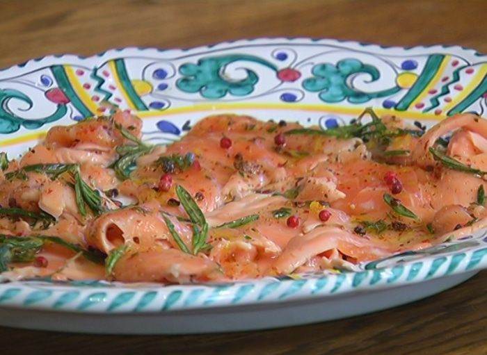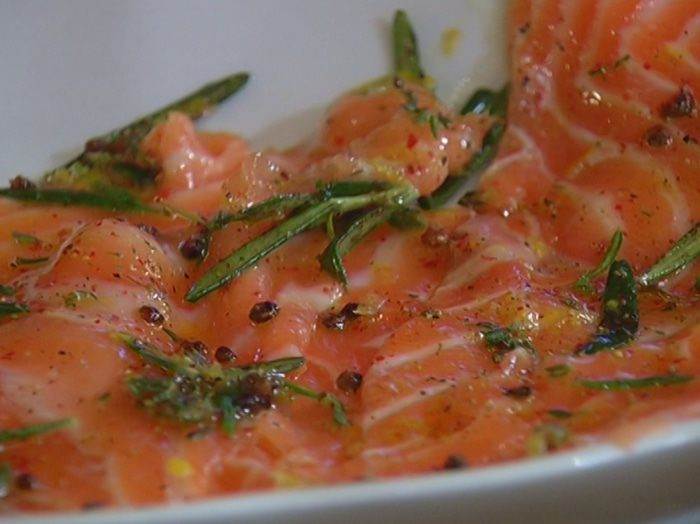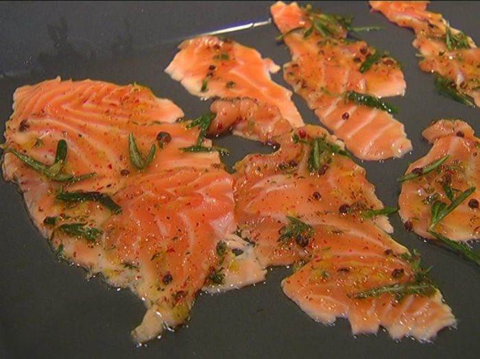 Карпаччо из семги с розовым перцем