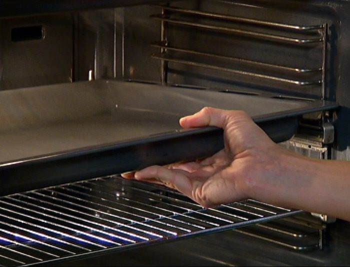 Разогреть в духовке пустой противень.