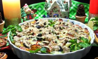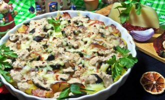 • Посыпать сверху тертым сыром. Поставить снова в духовку до расплавления сыра минут на 5-7.