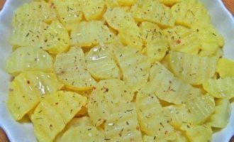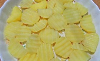 • Слоями выложить картофель.