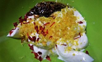 • Добавить цедру и чили перец. У меня сушеный, я строгаю кухонными ножницами, удобно.