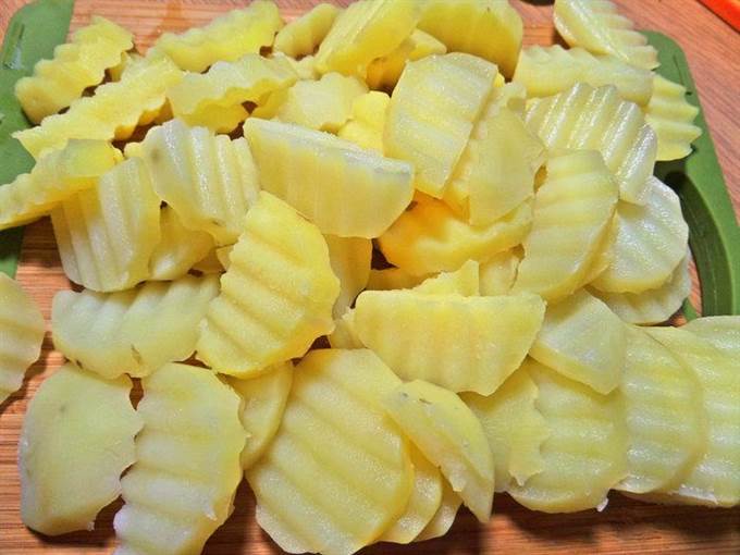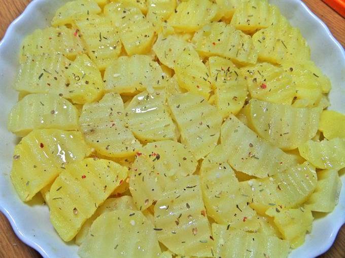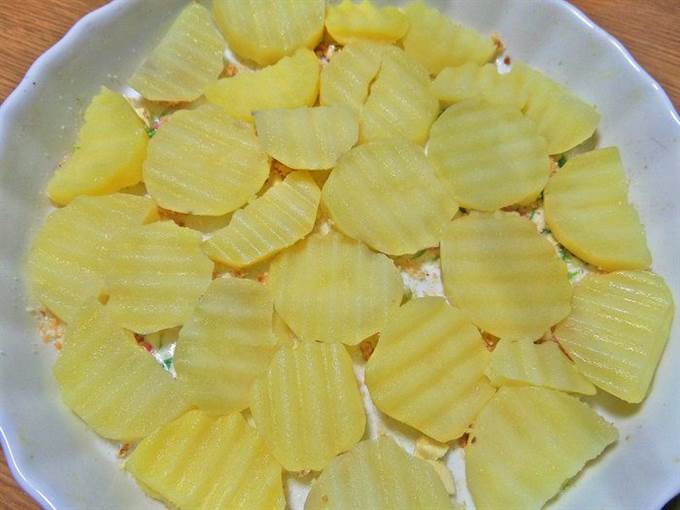 • Слоями выложить картофель.