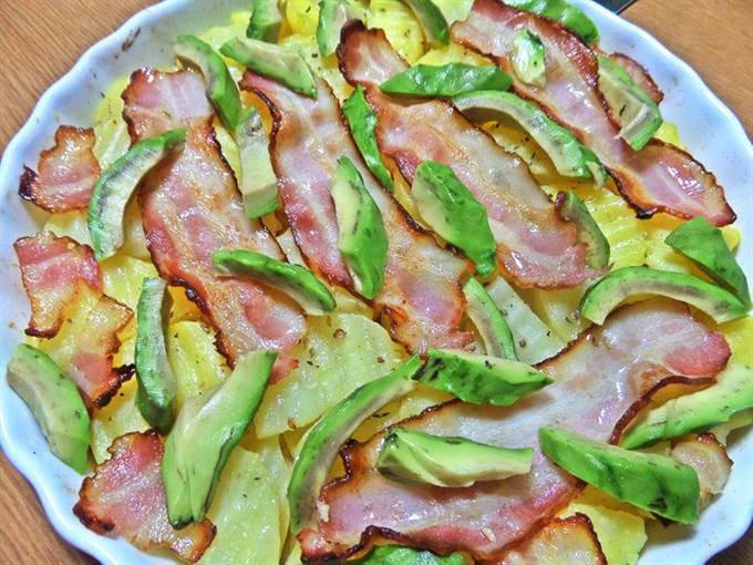 Картофель с беконом, авокадо и сыром