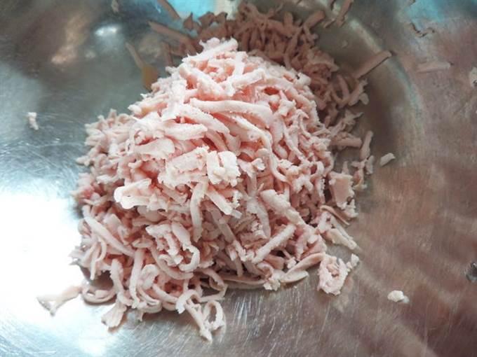Все будет предельно просто. Сардельки чистим, натираем на крупной терке.