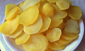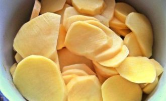 Картофель нарезать слайсами, чтобы быстрее сварился.