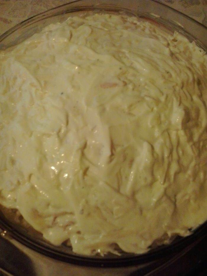 Тыкву смазываем майонезом и отправляем форму с запеканкой в духовку на 30-40 минут.