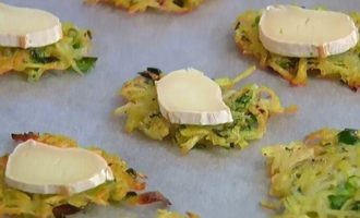 На каждую поместить по кружку сыра и отправить под гриль на 2-3 минуты.