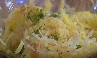 Картофель почистить и замочить в холодной воде часа на три, затем натереть на крупной терке. Натертый картофель отжать, чтобы удалить излишки жидкости.
