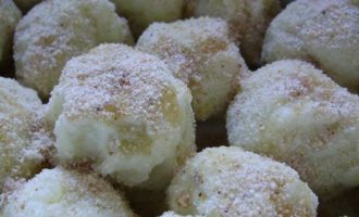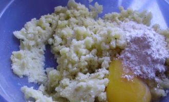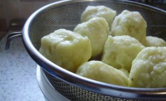 К толченому картофелю добавить яйца, муку, соль, молотый перец. Все тщательно перемешать, сформировать из полученной массы небольшие шарики.